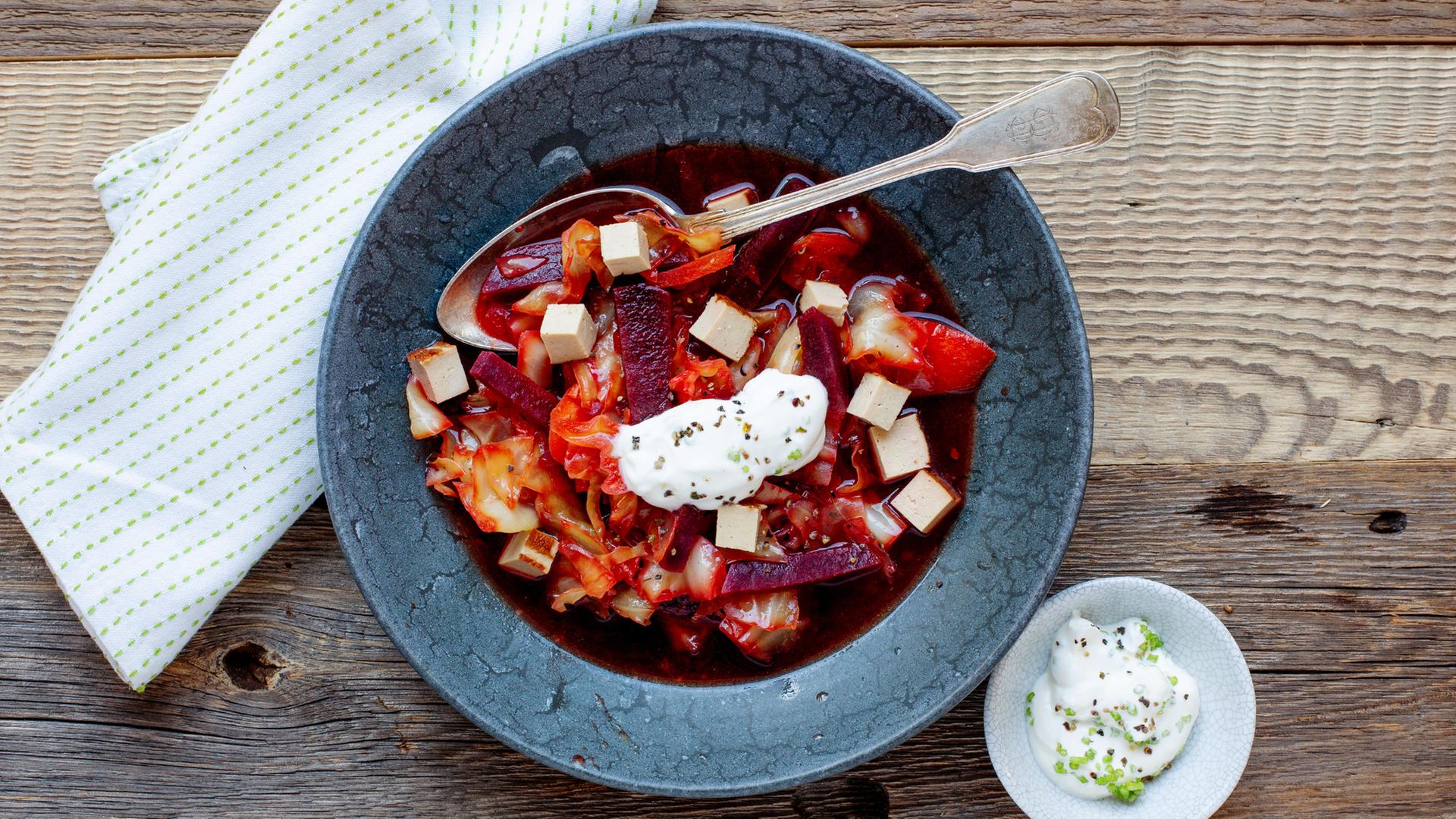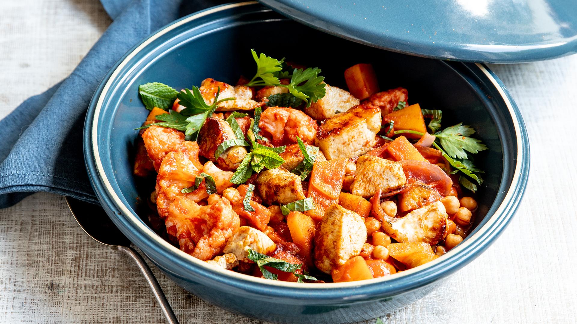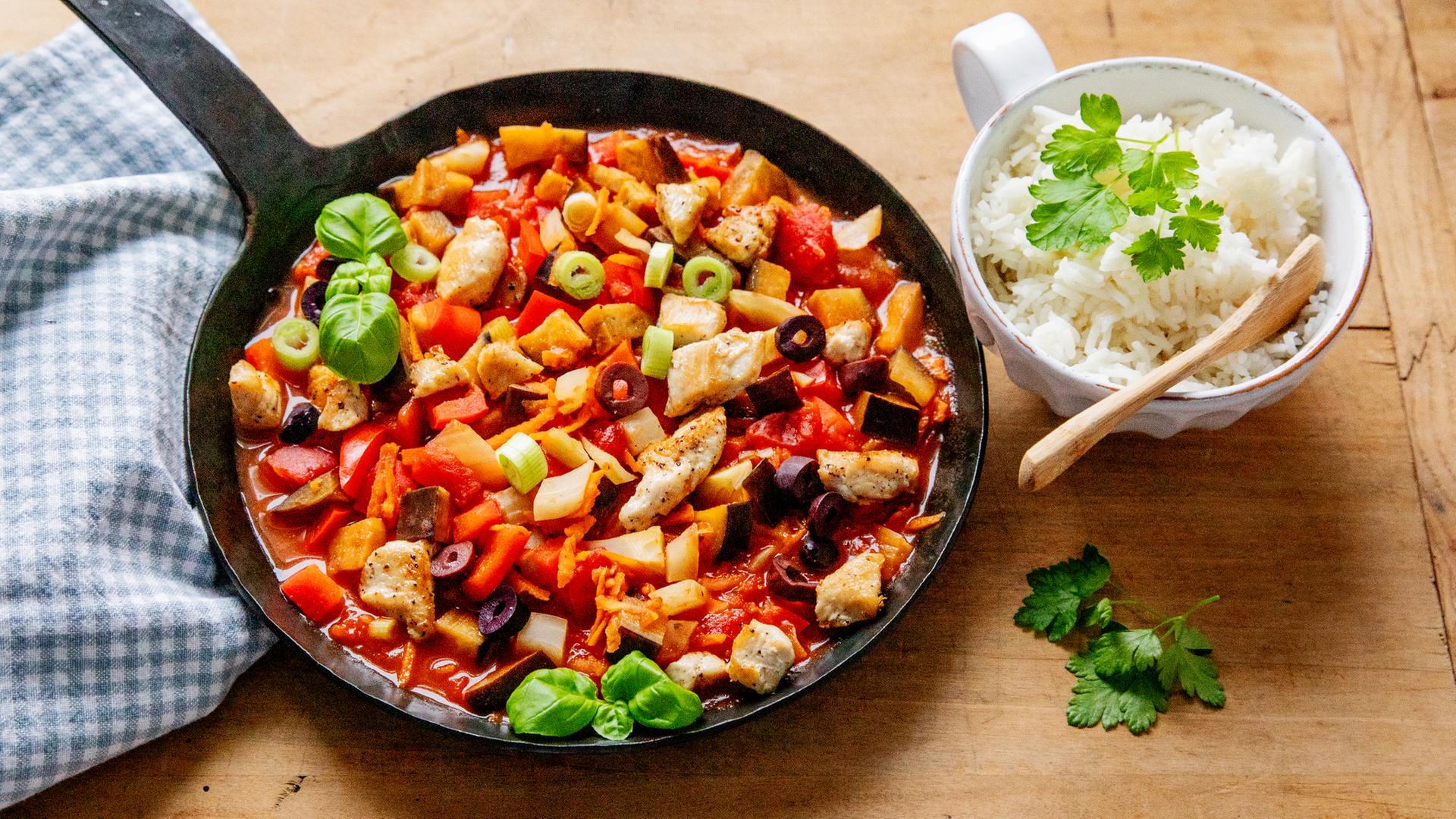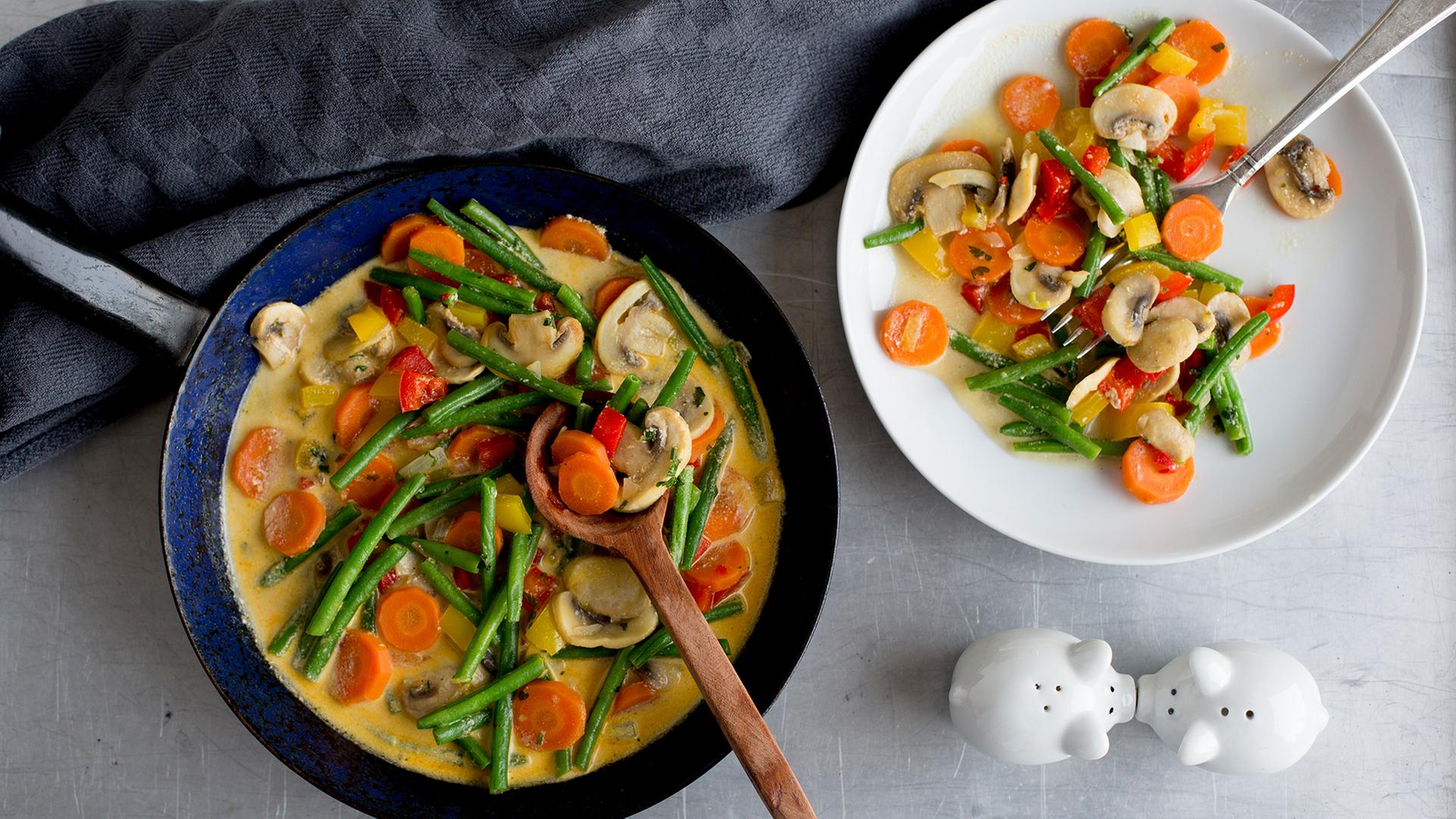 Lasse den Eintopf aufkochen, stelle den Herd auf mittlere Stufe und lasse die Kartoffeln etwa 10 Minuten köcheln.