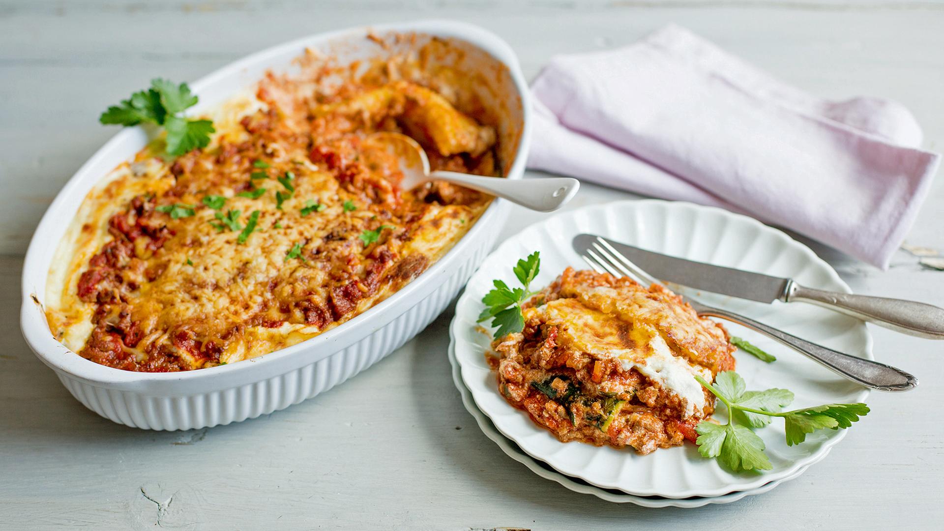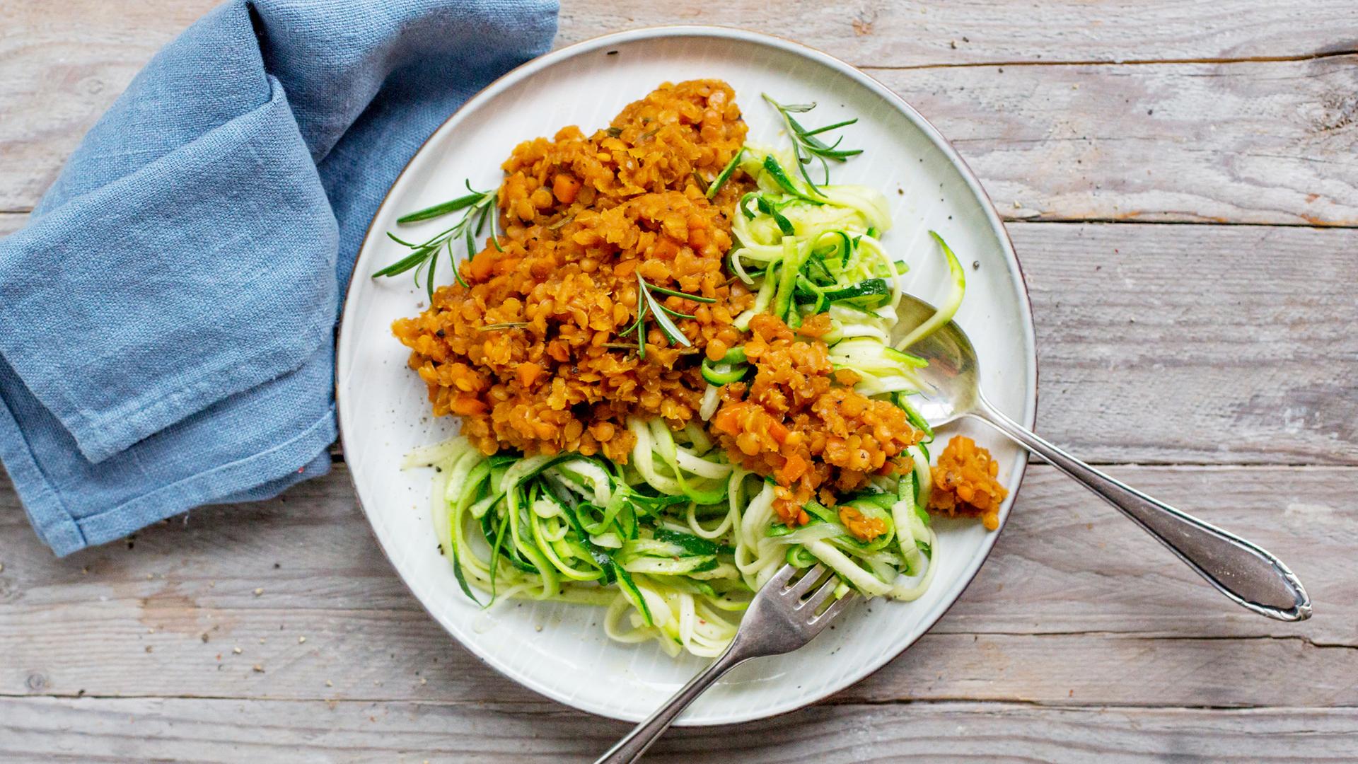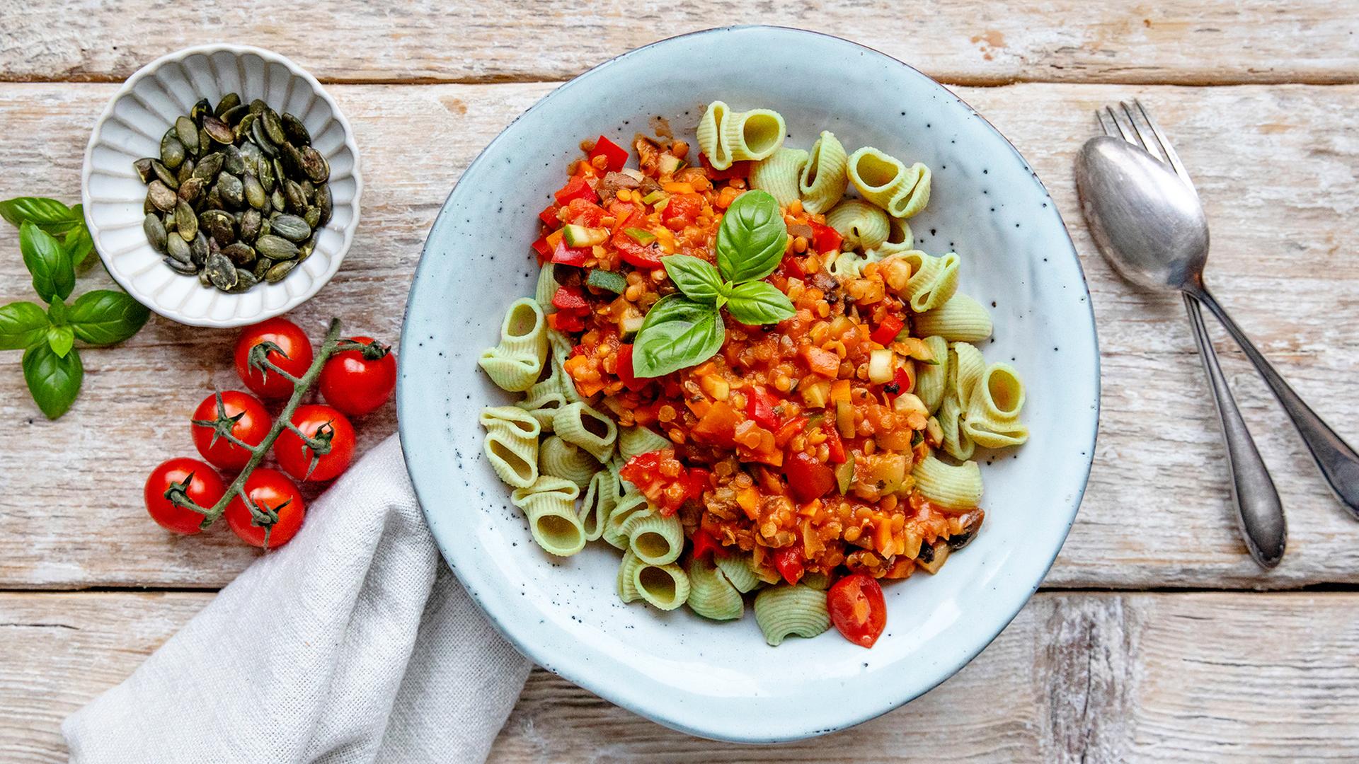 Erhitze das Olivenöl in einem großen Topf und brate die Zwiebelwürfel darin glasig an. Füge das Tomatenmark hinzu und brate es ebenfalls kurz mit an.