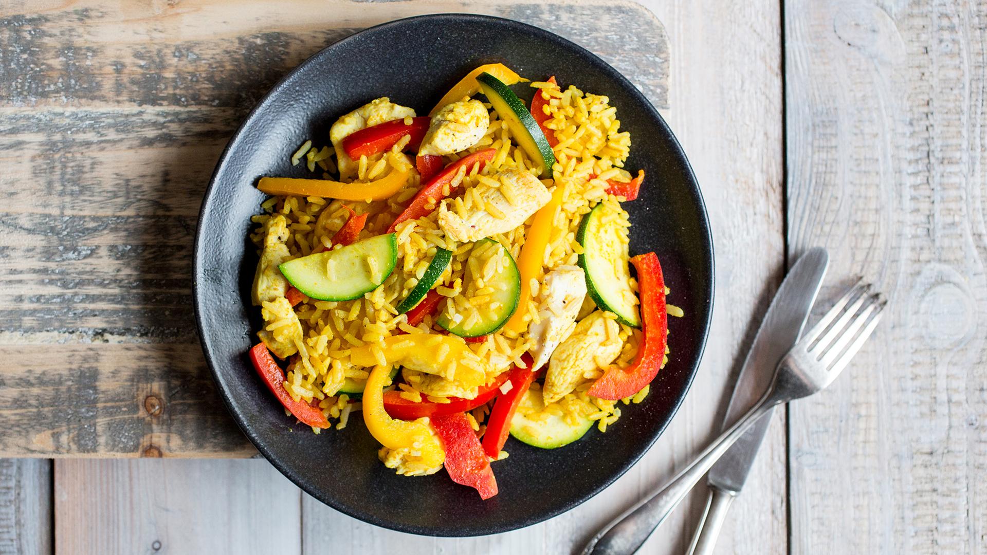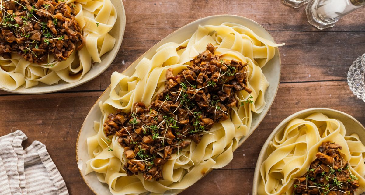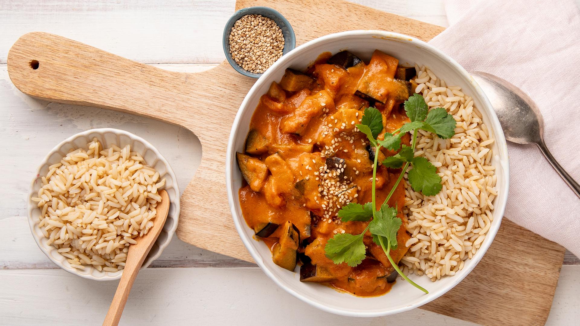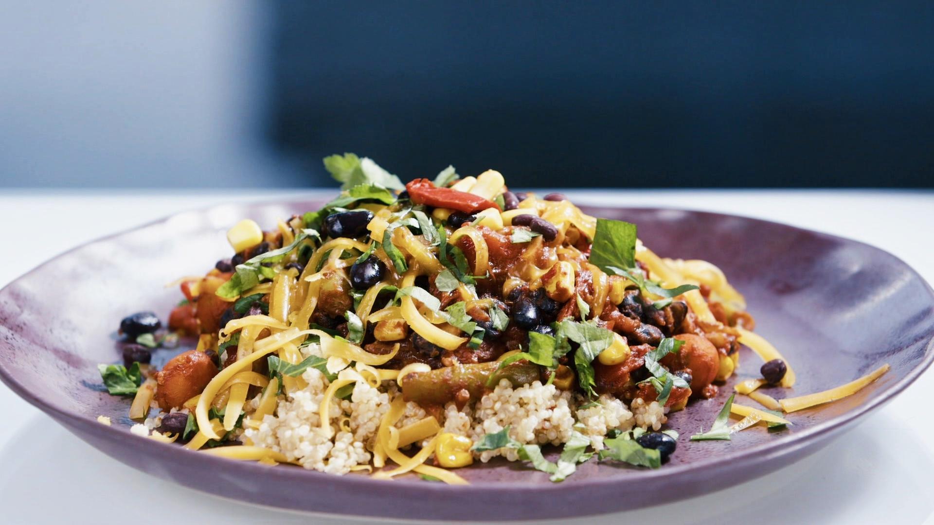 Erhitze das Olivenöl in einem großen Topf und brate die Zwiebelwürfel darin glasig an. Füge das Tomatenmark hinzu und brate es ebenfalls kurz mit an.