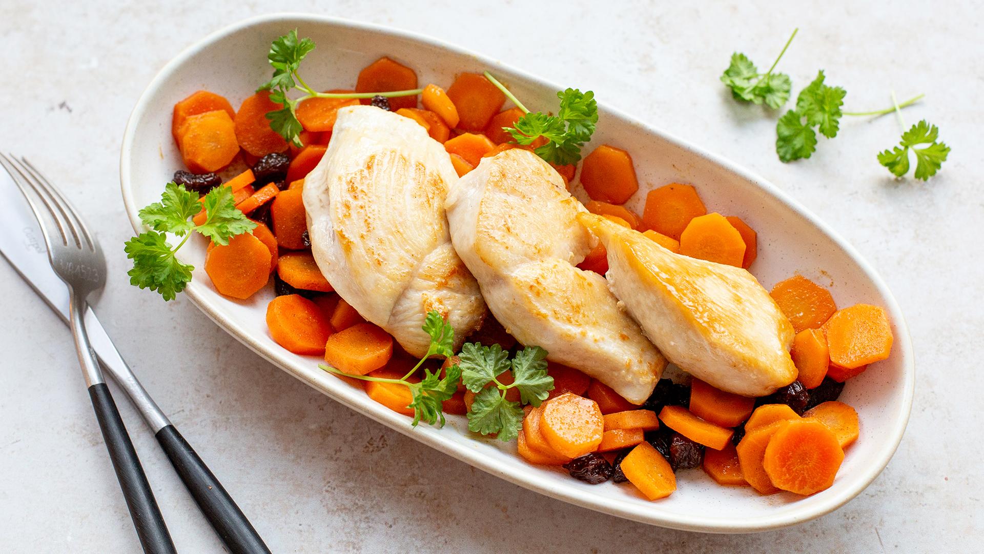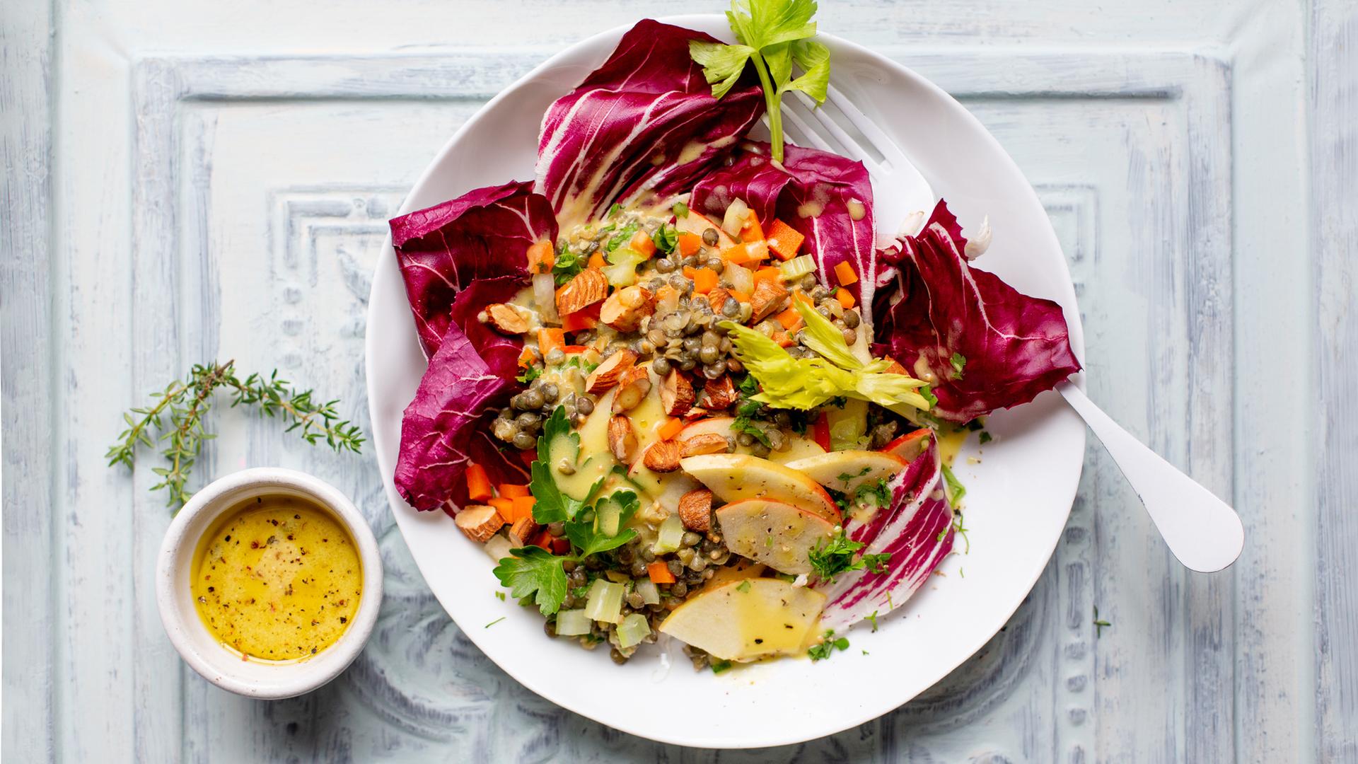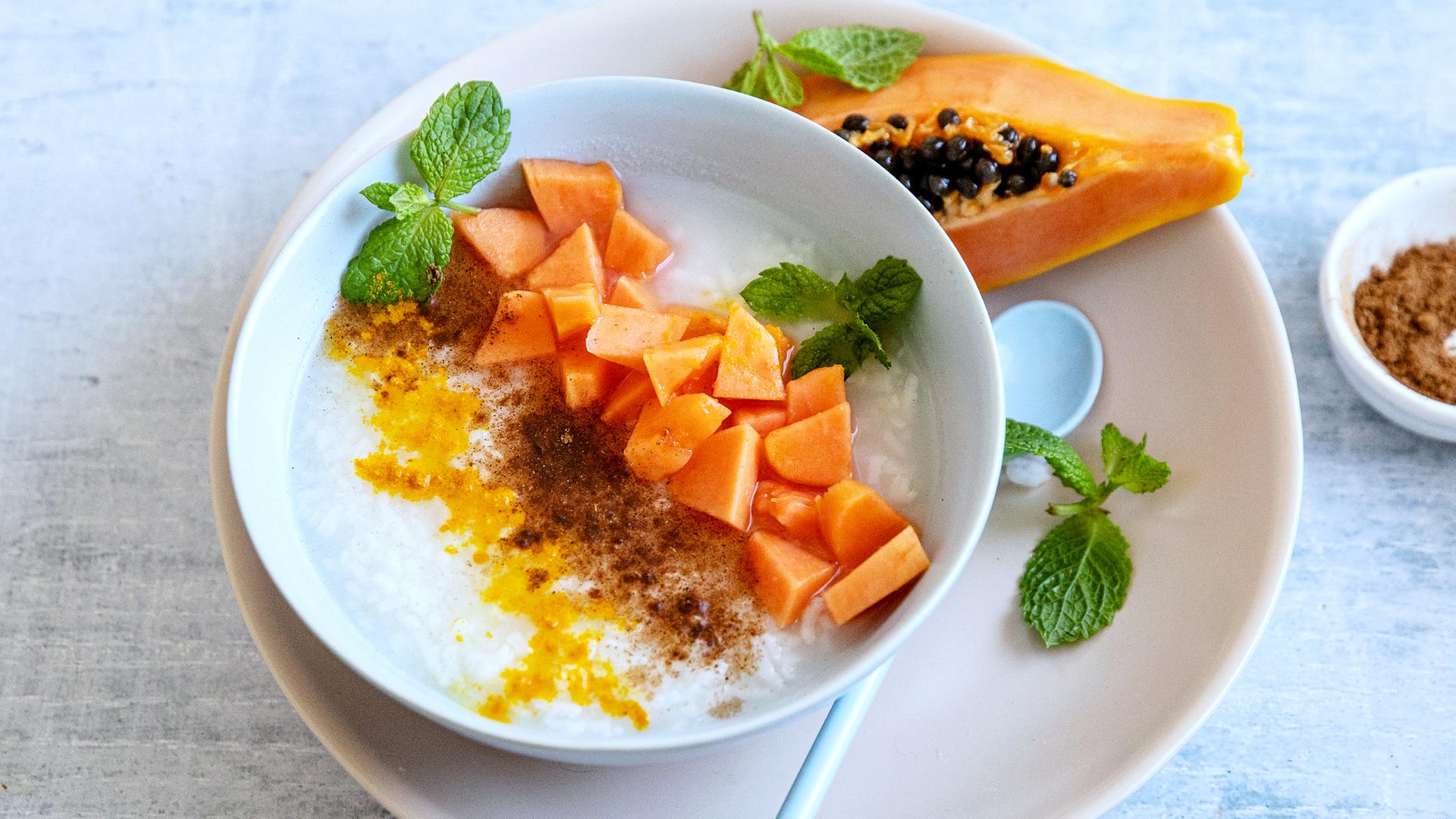 Schäle die Kartoffeln und schneide sie in grobe Stücke. Gib sie mit in den Topf und füge das Wasser, die Gewürze und den Zitronensaft hinzu.