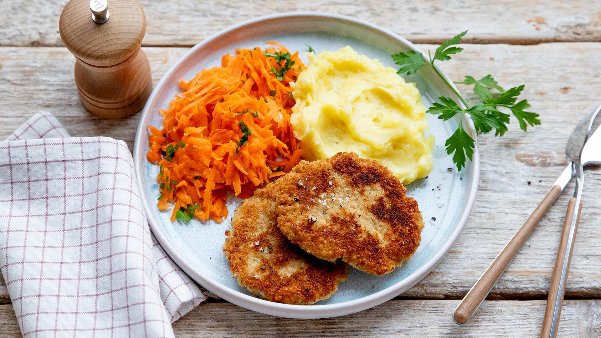 Knete den Frikadellenteig durch. Benutze einen kleinen Eisportionierer und forme Bällchen aus dem Teig.