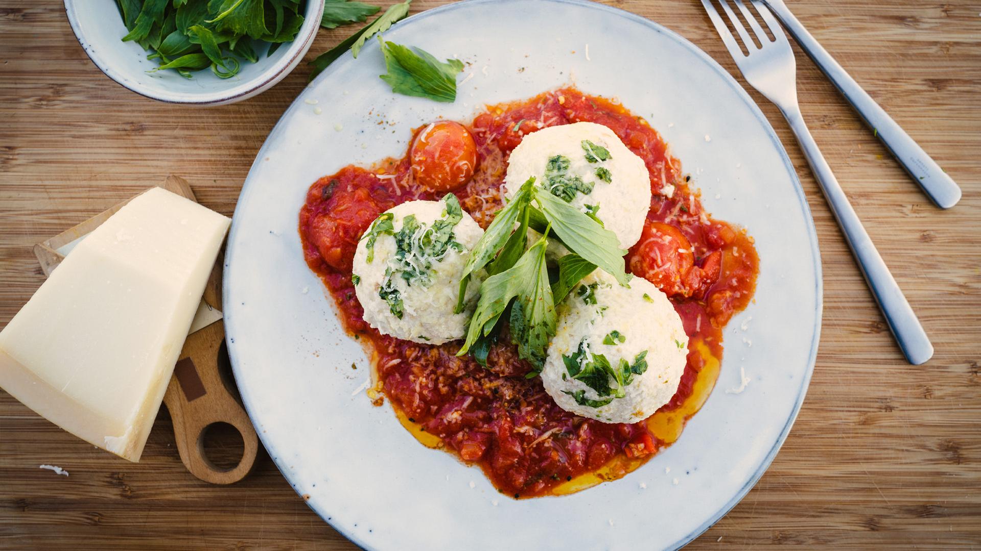 Wälze sie anschließend im Mehl und stelle die Bällchen abgedeckt kurz in den Kühlschrank.