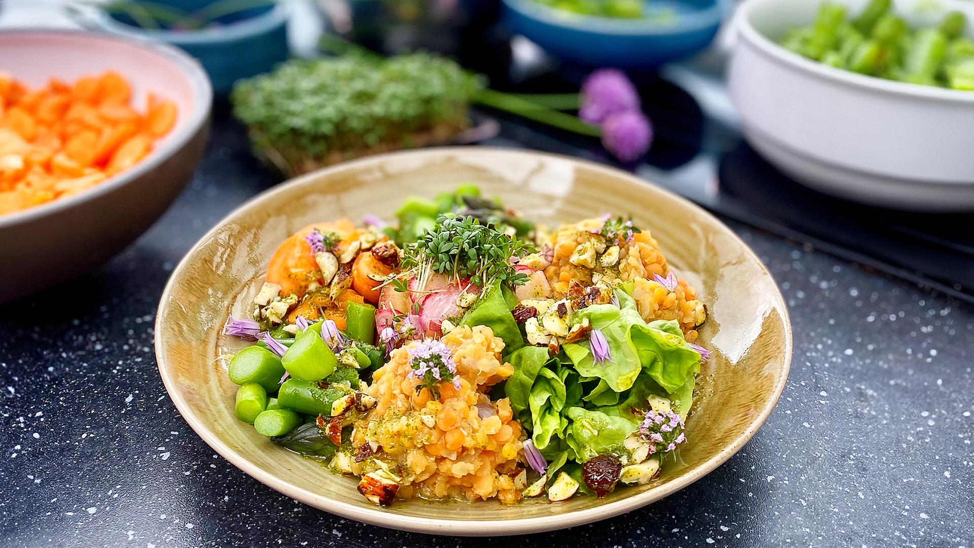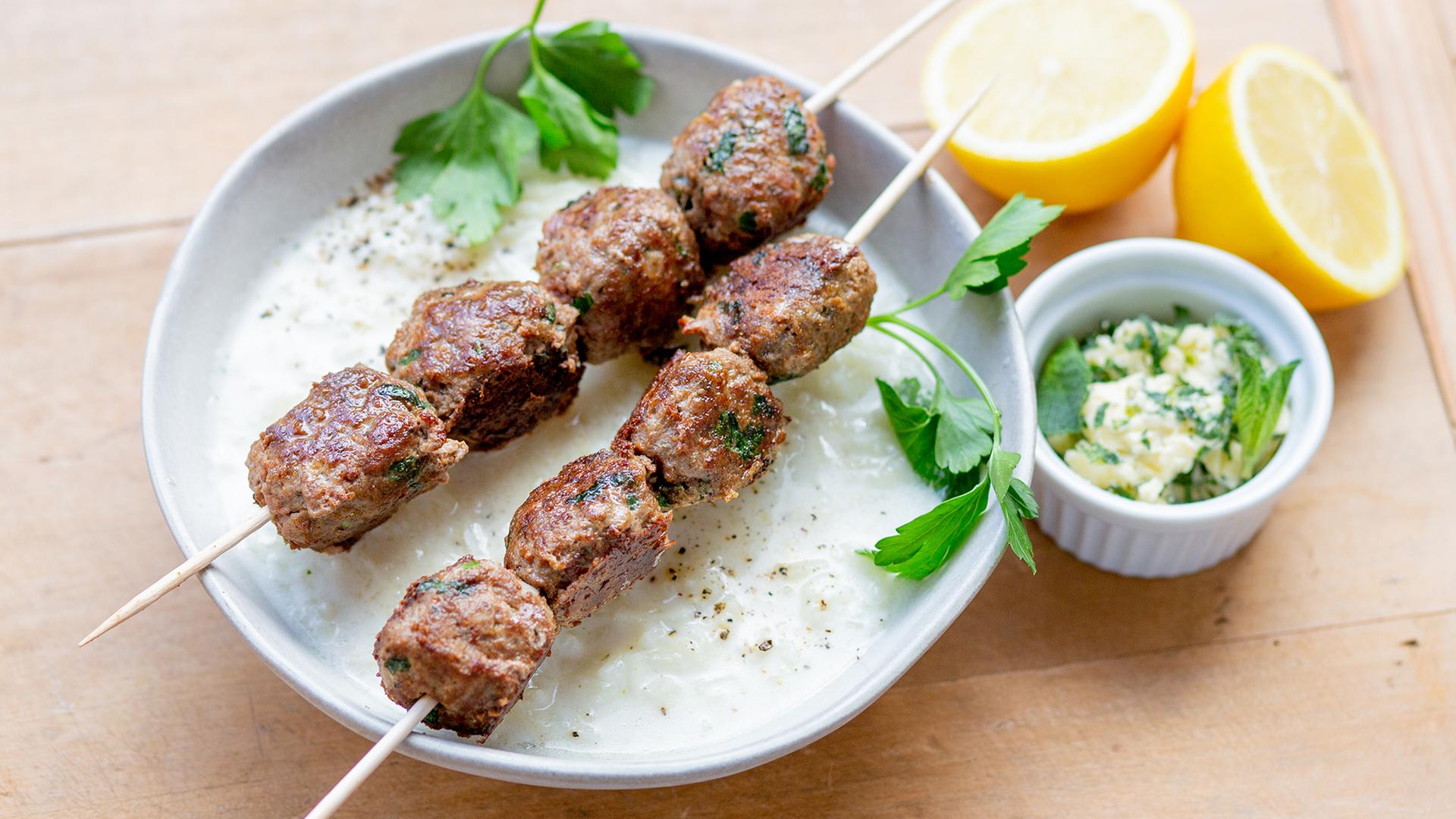 Serviere die Sulu Köfte mit den Chiliflocken und etwas gehackter Petersilie.